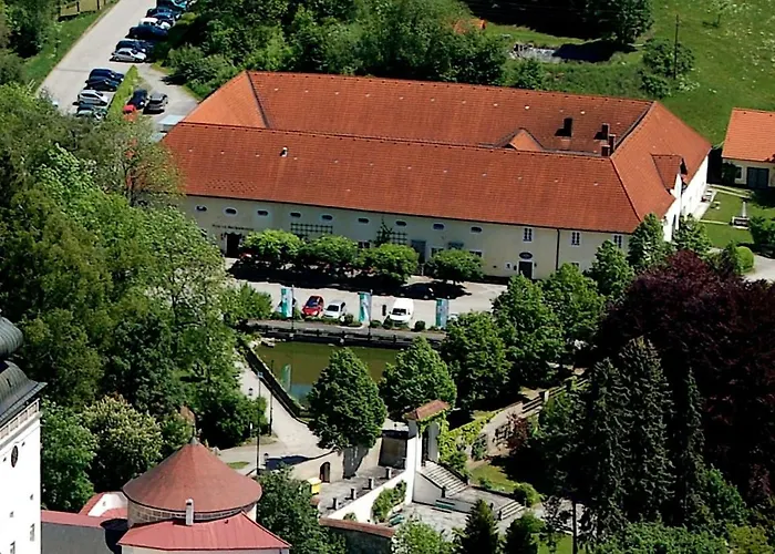 3つ星ホテル Schlossbrauerei Weinberg - Erste Ooe. Gasthausbrauerei Kefermarktからは,から歩いてわずか6分シュロス・ヴァインベルクまで簡単に行くことができます. Kefermarktにあるホテル内のアラカルトレストランではベジタリアン料理を楽しむことができます.